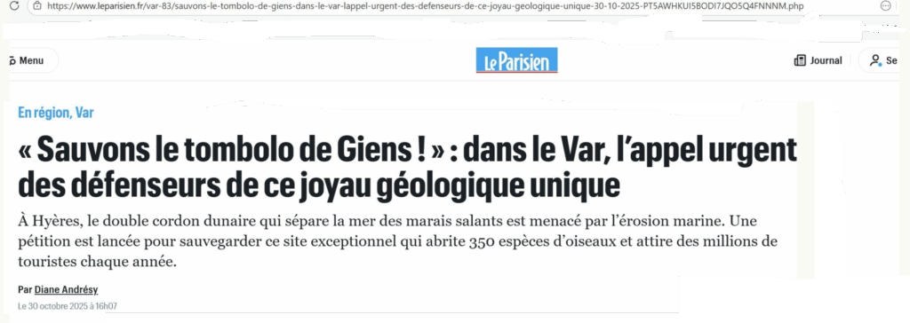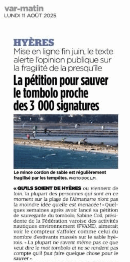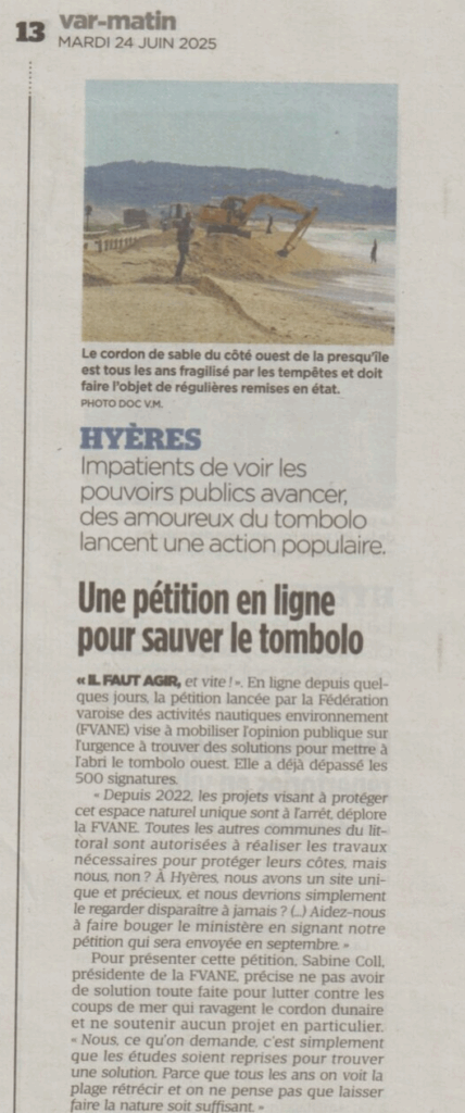 À Hyères, face à l’inaction de l’État, mairie et citoyens se mobilisent pour sauver le tombolo – ici